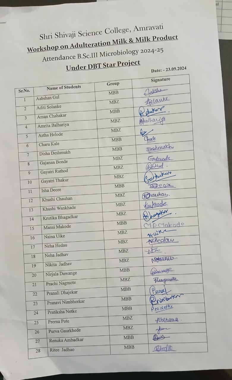 Adulteration of food products, particularly milk and dairy, has become a growing concern globally. Milk is considered a complete food, rich in essential nutrients such as proteins, fats, vitamins, and minerals. However, due to its high demand, it is often subject to adulteration, compromising not only the quality of the product but also posing serious health risks. With the increasing awareness of food safety, the Department of Microbiology and Biotechnology recognized the need for students to understand the dynamics of food adulteration, specifically in milk and milk products. This led to the organization of an experimental workshop on 23rd September 2024, designed to empower students with hands-on skills and theoretical knowledge on detecting milk adulteration.