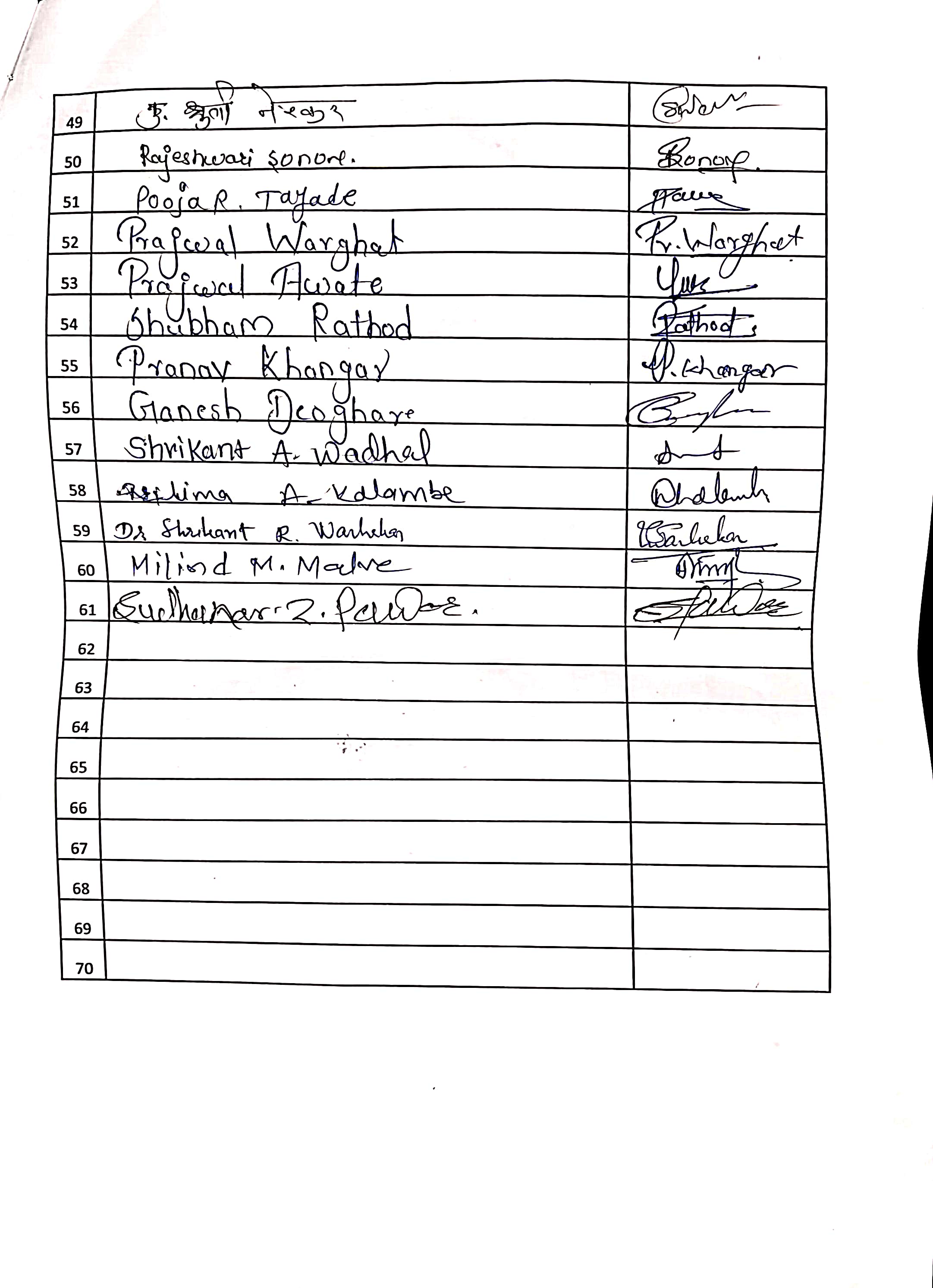 Attendance Sheet: