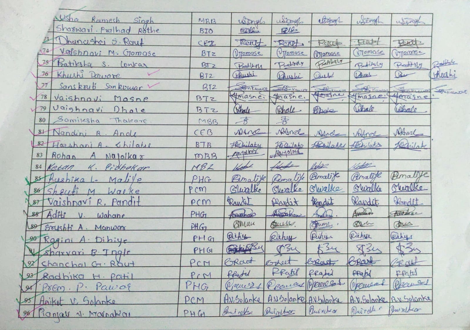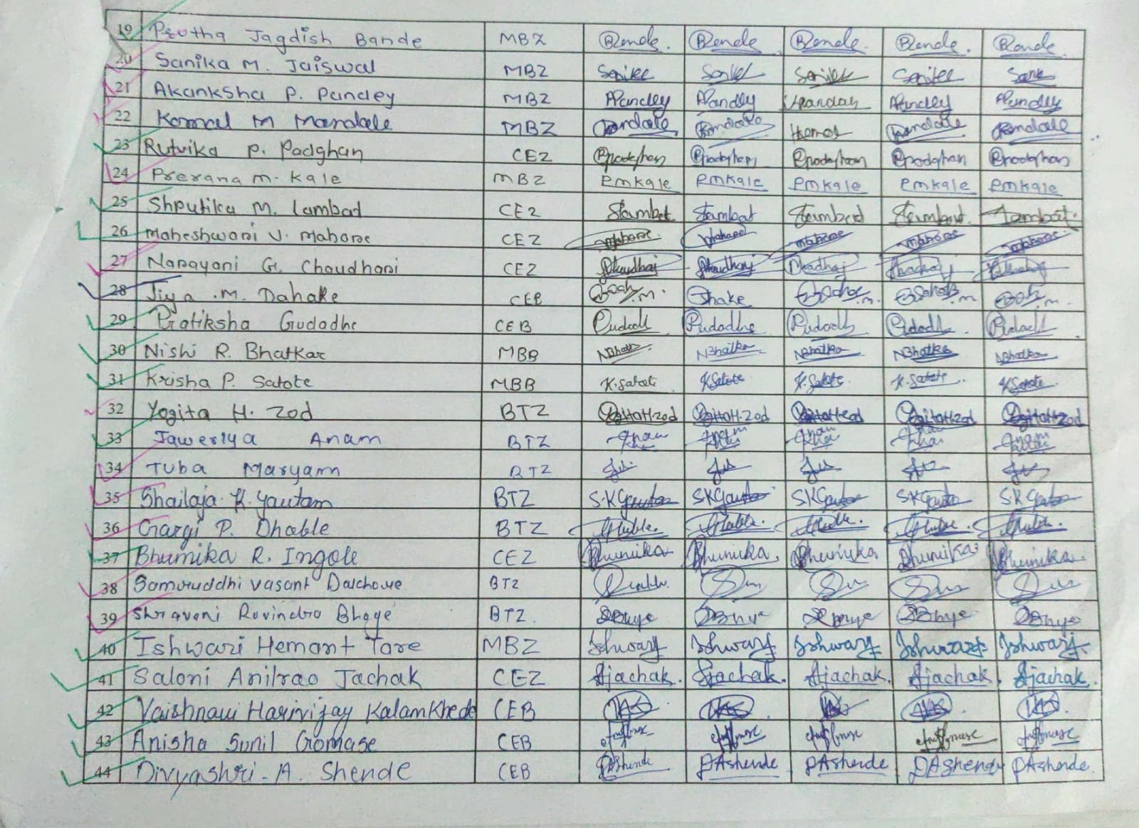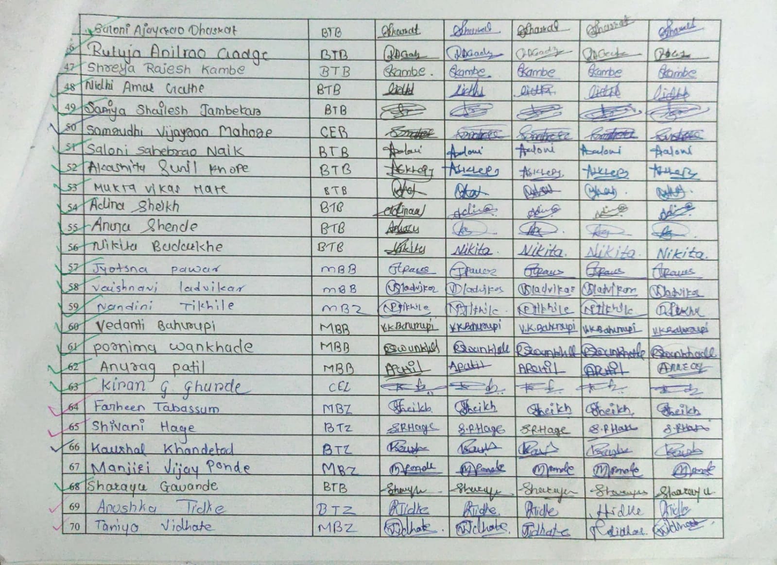 Attendance Sheet: