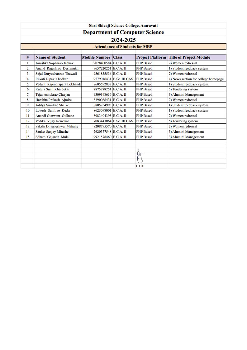 Classes Involved: B.Sc. III CAS, B.C.A. II