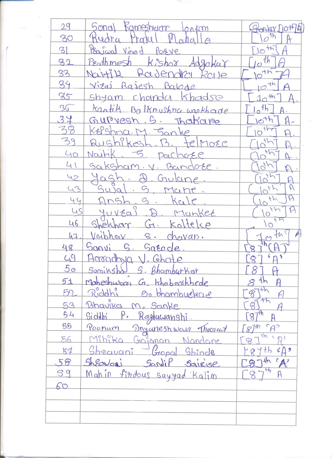 Attendance Sheet: