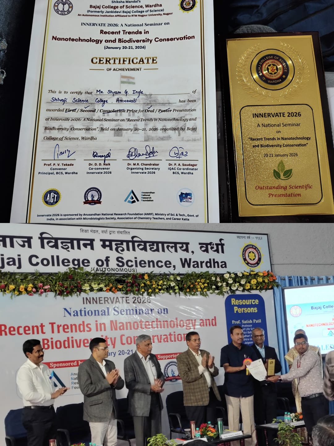Prof. Mr. Shyam Ingle got 2nd prize (oral presentation) in National seminar o... | 2026-04-14 06:51 | 236k |