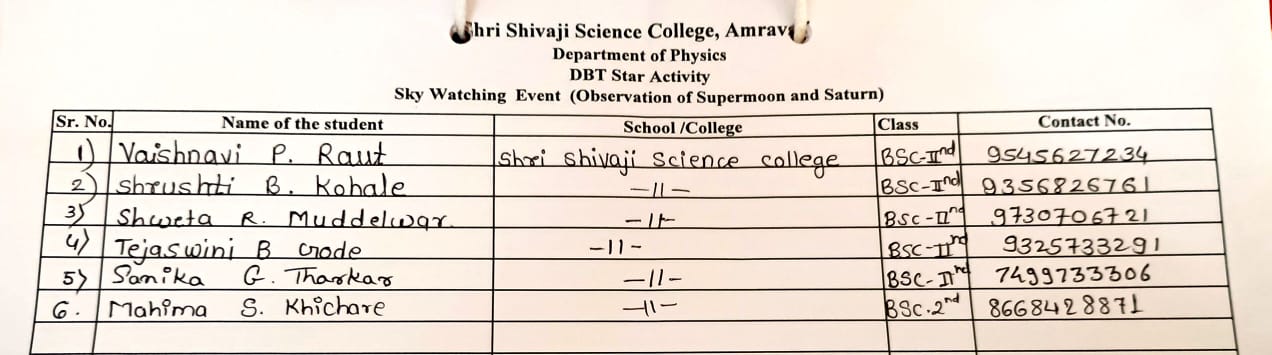 The Sky Watching Event was a well-received, successful endeavor, achieving its aim of combining scientific learning with public engagement. By allowing participants to view celestial phenomena firsthand and guiding them through the intricacies of astronomy, the Department of Physics at Shri Shivaji Science College effectively promoted awareness and interest in this fascinating field. Dr. Nagpure’s informative sessions and the meticulous coordination by Ms. Butte and Mr. Korde made the event accessible, interactive, and memorable for all attendees.