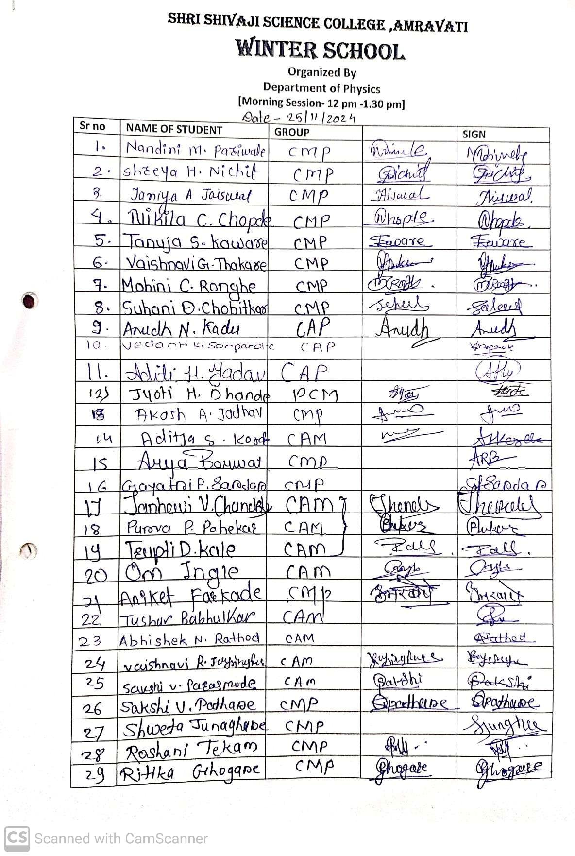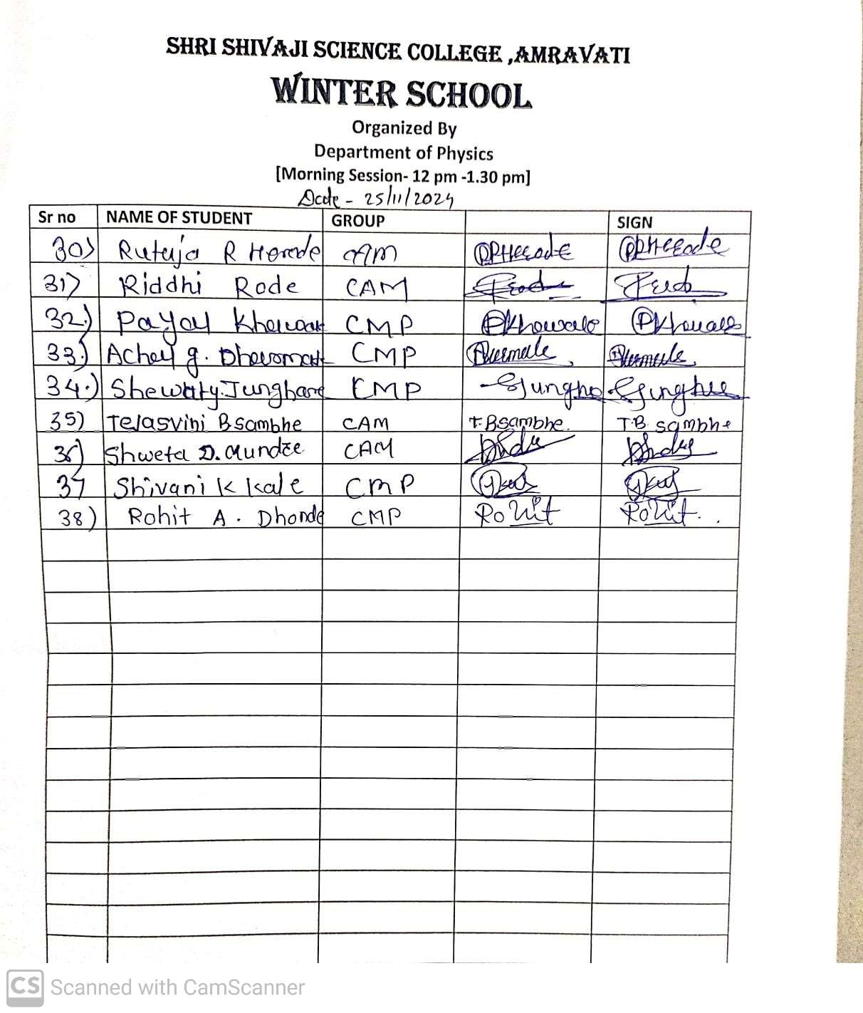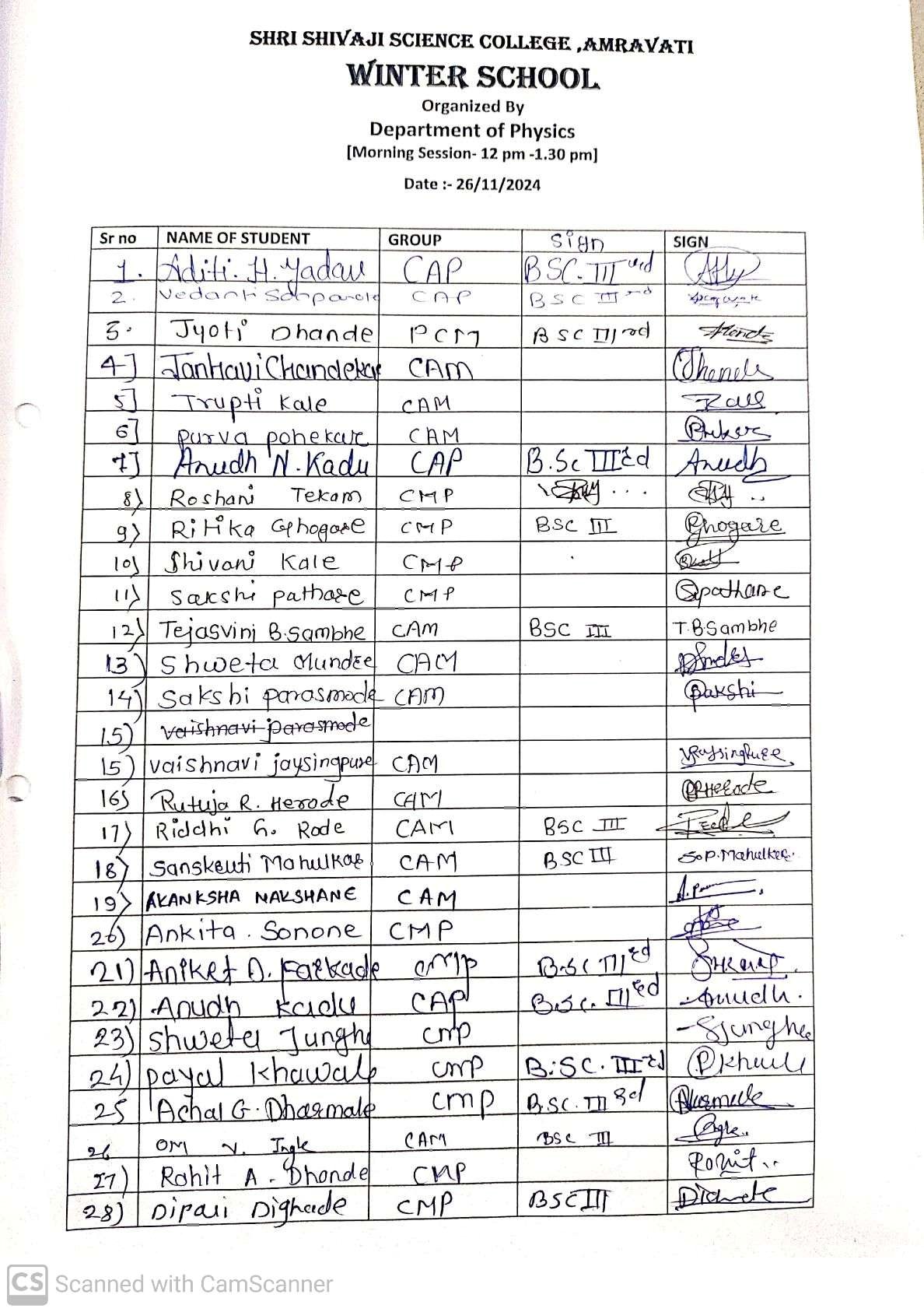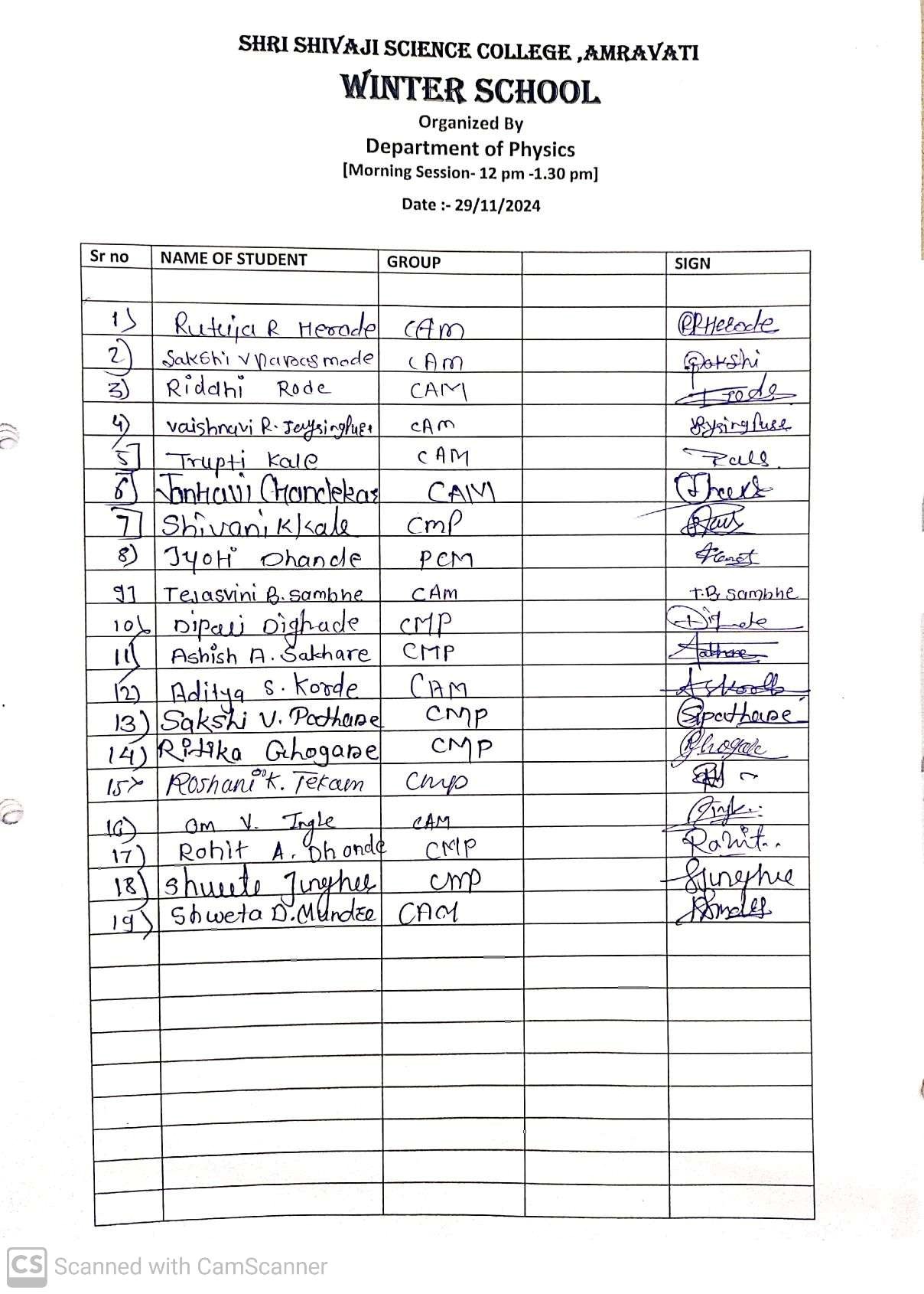 The Winter School was inaugurated on 25th November in the presence of the Head of the Physics Department, Dr. P. A. Nagpure, along with other distinguished faculty members. In his inaugural speech, Dr. P. A. Nagpure emphasized the importance of learning emerging technologies to stay competitive in the modern world. A total of 38 students from B.Sc. III (CMP, CAP) participated in the event.