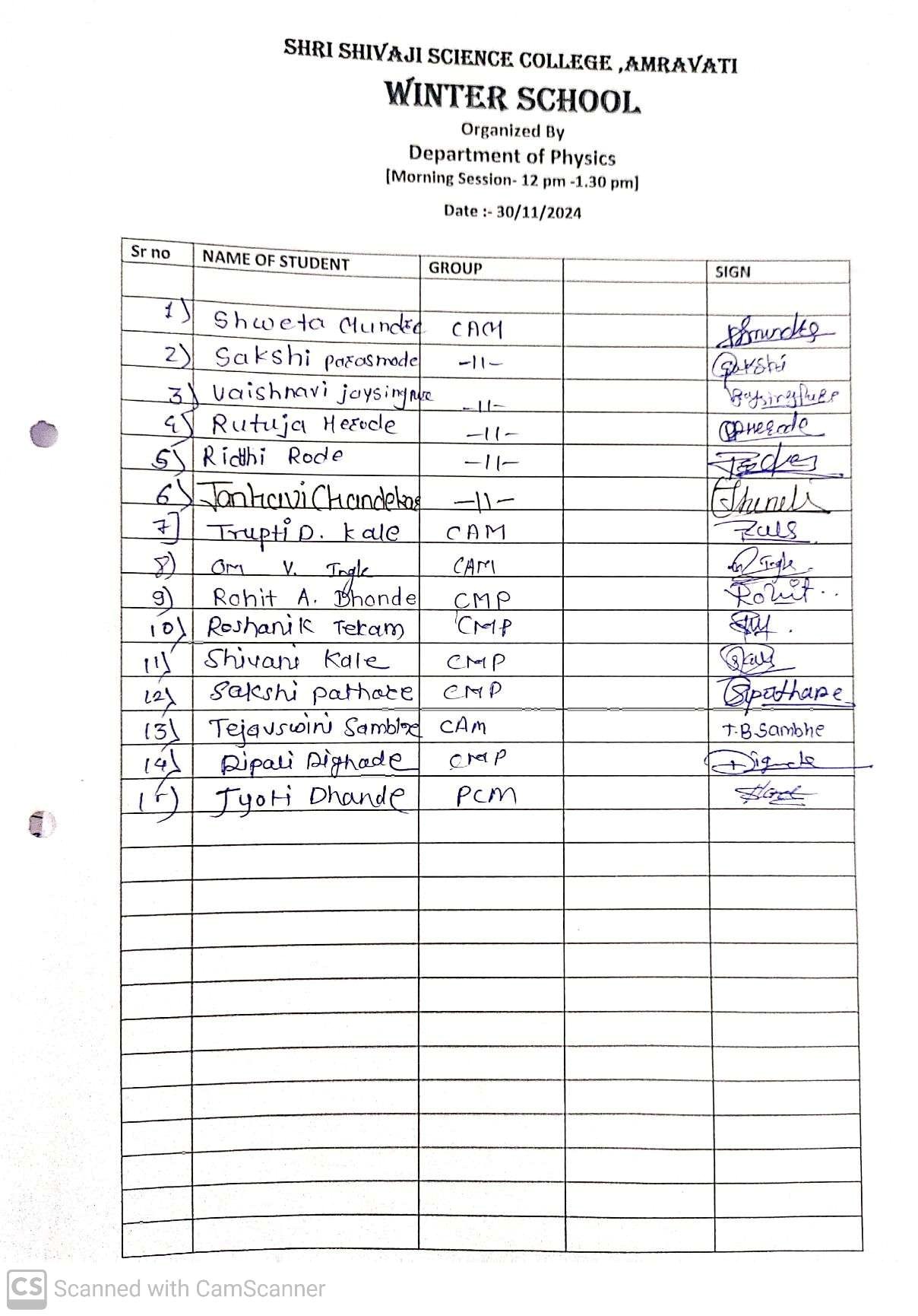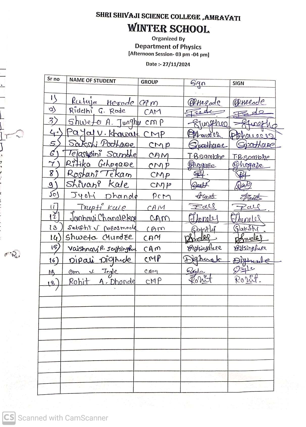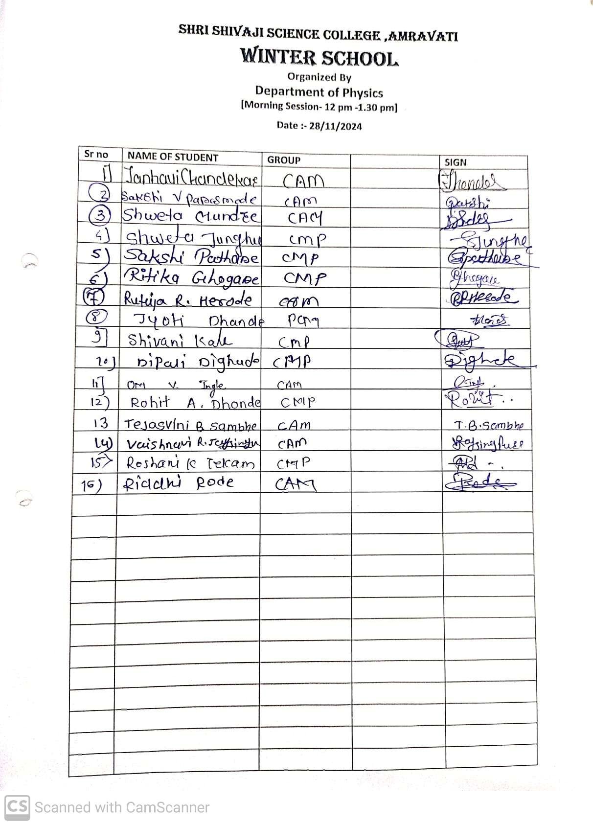 The Physics Department of Shri Shivaji Science College, Amravati, successfully organized a six-day Winter School on "Smart Physics- Arduino and Sensor Integration" from 25th to 30th November for B.Sc. III-year students from the PCM, CAP, CMP, and CAM groups. The program aimed to provide students with hands-on experience and in-depth knowledge about Arduino technology and its integration with various sensors for practical applications.