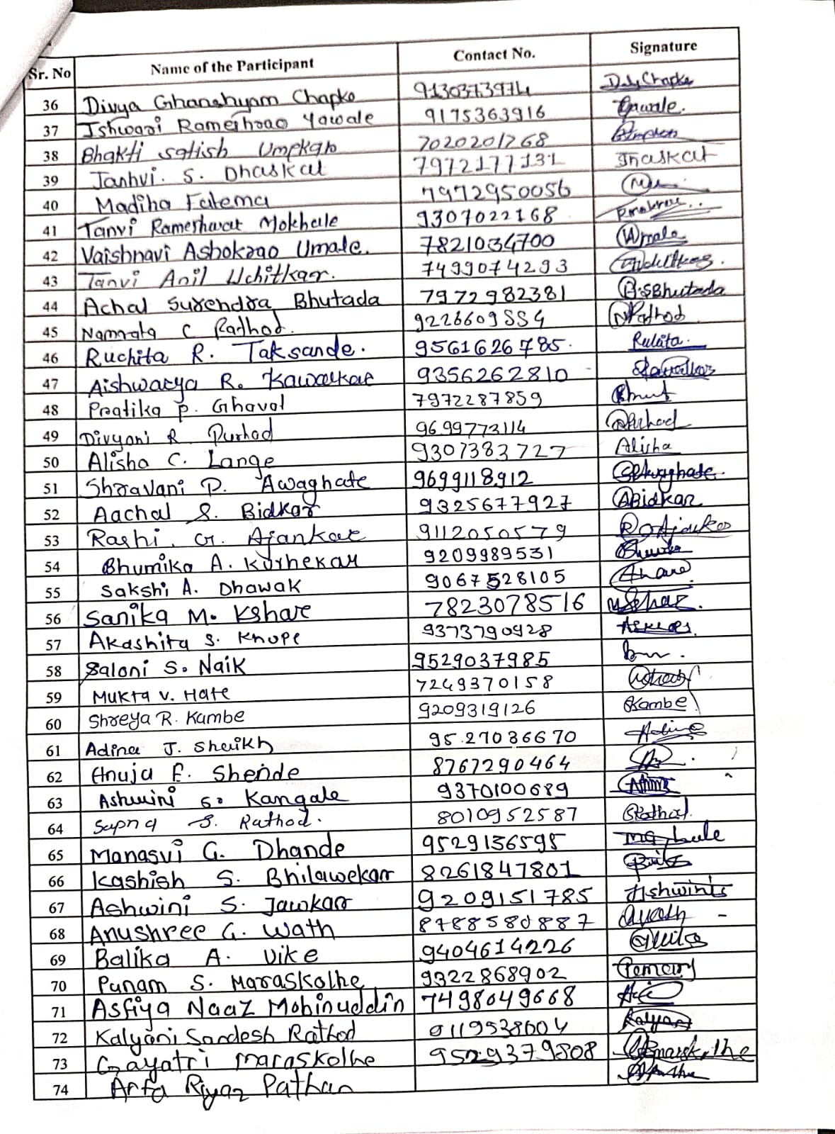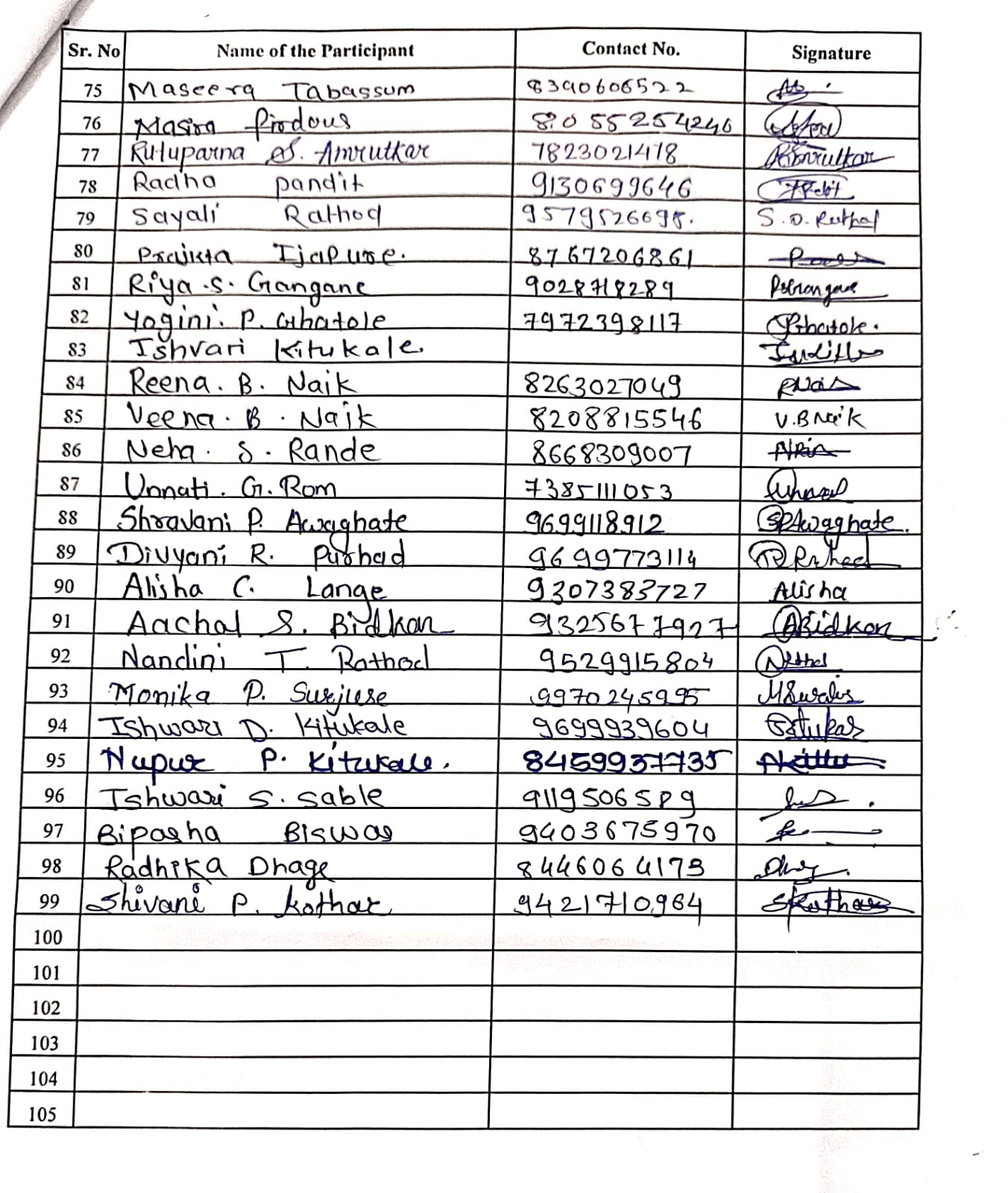 The program was conducted under the guidance of Head of Department Dr. D. D. Khedkar, with coordination by Dr. S. V. Pundkar and Dr. A. N. Darsimbe as Activity In-charges. The successful execution of the workshop was made possible with the support of organizing committee members Dr. G. B. Hadawoo, Dr. R. C. Maggirwar, Dr. P. D. Deshmukh, and Dr. A. S. Kale. Their dedicated efforts ensured smooth coordination and effective management of the event.