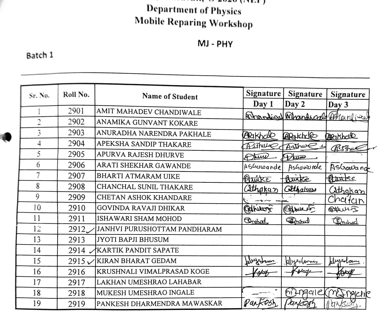 A three-day workshop on Mobile Repairing was organized by Department of Physics at Shri Shivaji Science College, Amravati from 6 April 2026 to 8 April 2026 in the Physics Laboratory for BSc II (MJ) year students. The Mobile Repairing Workshop was organized with the aim of imparting practical knowledge and technical skills related to mobile phone repairing. This workshop provided an excellent platform for students to learn both theoretical concepts and practical techniques involved in mobile servicing.