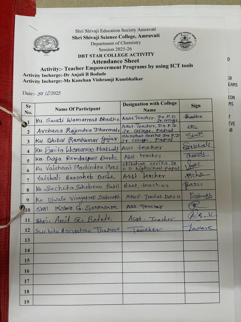 Under the aegis of the DBT, a specialized one-day workshop was organized to enhance the digital literacy and pedagogical skills of educators at Dr. Panjabrao Deshmukh High School and Junior College Papal, Nandgaon Khandeshwar, Dist. Amravati. The program, titled "Teacher Empowerment Program by using ICT Tools," was designed to introduce modern Information and Communication Technology (ICT) tools to simplify complex scientific concepts and streamline administrative academic tasks. A one-day workshop titled "Teacher Empowerment Program by using ICT Tools" was successfully conducted to bridge the gap between traditional teaching and modern digital pedagogy. The program aimed to equip educators with the skills necessary to integrate interactive simulations and digital management tools into their daily classroom routines.The workshop was divided into three core technical modules, focusing on different aspects of digital education: