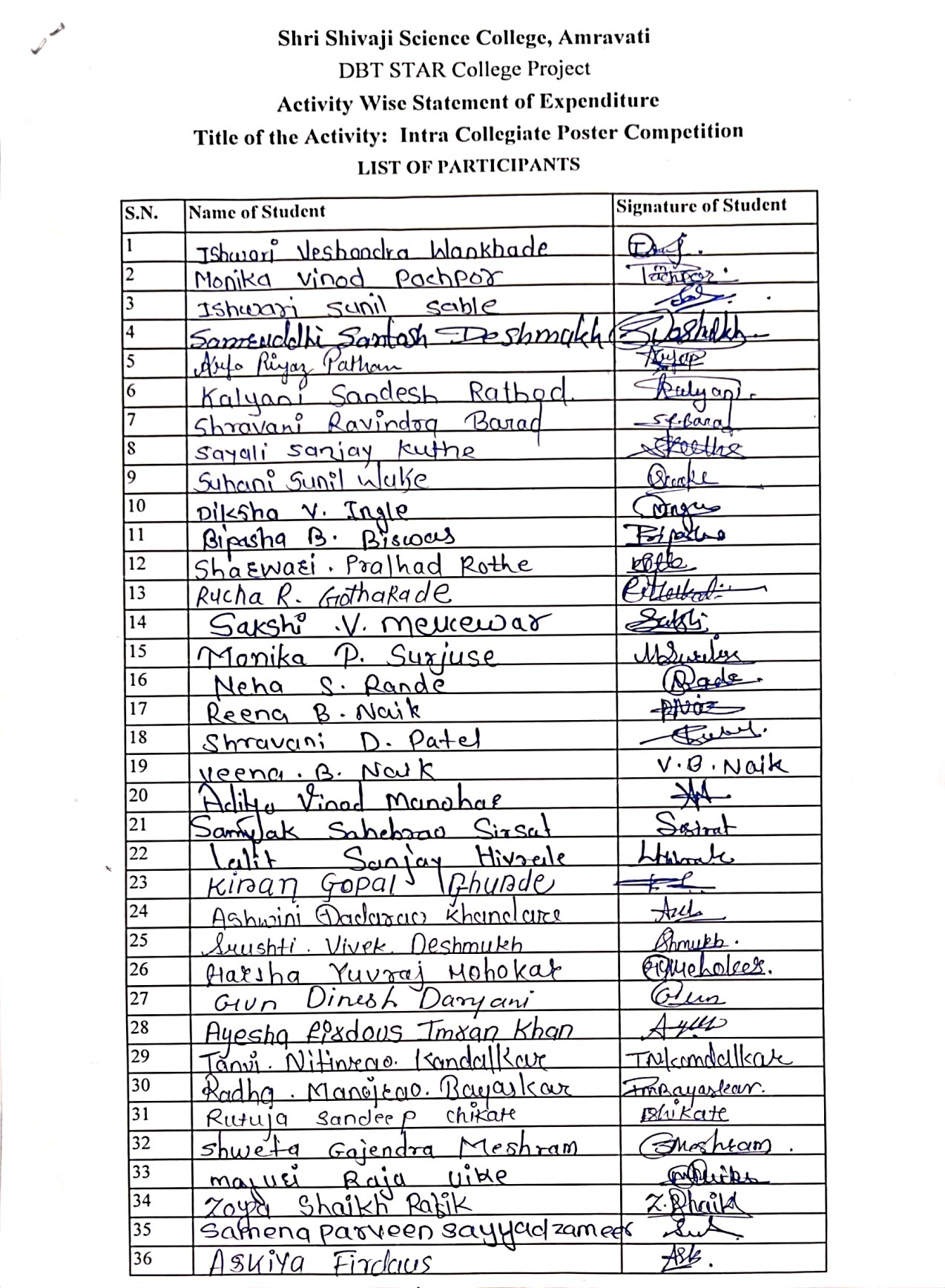 Intra-collegiate Poster Competition for B.Sc. I , II ,III Students (2025-26) was organized by Department of Chemistry on Friday 3rd October 2025 under the guidance of Dr. G.V. Korpe, Principal, Shri. Shivaji Science College, Amravati, Dr.P.R. Mandlik, Head, Department of Chemistry, Dr. D.D. Khedkar ,Coordinator , DBT Star Project , Dr. N.A. Kalambe , Dr. V. B. Khobragade organizing Committee member. All the Respected faculty members of Department of Chemistry were present for this programme. Dr. Shrikant R. Warhekar, Assistant Professor, Dept. of Environmental Science , Smt. Narsamma Art’s Commerce and Science College, Kiran Nagar, Amravati was the Guest Speaker and judge for this competition. Dr. Shrikant R. Warhekar guided our students about the impact of Air and water pollution. His insightful lecture provided a depth understanding of the subject enriching the knowledge of all participants. Dr. V.D. Bute , Assistant Professor, Department of Environment Science, Shri. Shivaji Science College, Amravati also worked as the Judge for this competition. Dr. P.R. Mandlik, Head, Department of Chemistry, had guided students about the Air and Water Pollution which is a serious issue that can be defined as the introduction of harmful substances or pollutants into the environment . Dr. D.D. Khedkar , Coordinator , DBT Star Project had given the introduction of DBT scheme by Department of Bio Technology, Govt. of India. He introduced the students about benefits of DBT activity. Dr. Shrikant R. Warhekar had declared the result and appreciated the participants for their handmade poster and good presentation. Mr. V. D. Bute had guided the students about the impact of different pollution causing our environment and our duties towards the healthy atmosphere . He further added that pollution can damage the quality of air, water and soil , which can disturb the balance of the ecosystem and impact our lifestyle.