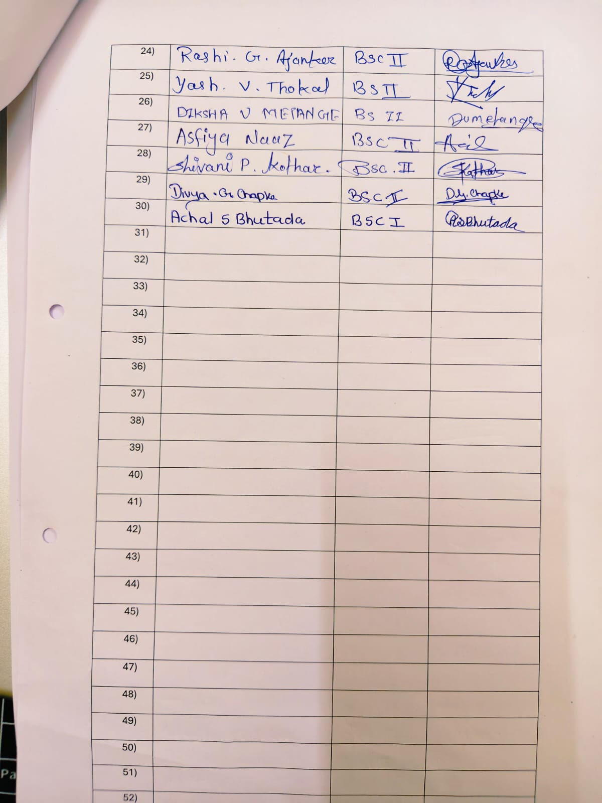 Attendance Sheet: